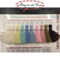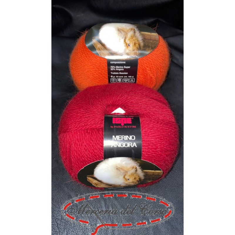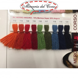 gomitolo da 50 grammi composta da una percentuale del 70 lana merinos extrafine e un 30 di angora con sviluppo di 160 mt da lavorare con ferri 4,5-5